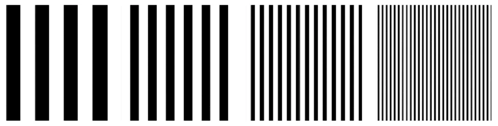 لتحديد قدرة أي نظام على تكرار نمط – Pattern، نستخدم ما يسمى بمخططات رونشي – Ronchi، وهي عبارة عن سلسلة من الخطوط المتوازية باللونين الأبيض والأسود، تتباعد عن بعضها البعض بقدر يتناقص بشكل تدريجي كما في المخططات أدناه :