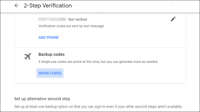 بغض النظر عن المشكلة، فهذا لن يقيدك من الوصول إلى حسابك على جوجل. إذا كانت لديك أكواد احتياطية جاهزة، فمن السهل تسجيل الدخول إلى حسابك وتوثيق الهوية تحت أي ظرف من الظروف: إليك كيفية الحصول عليها: