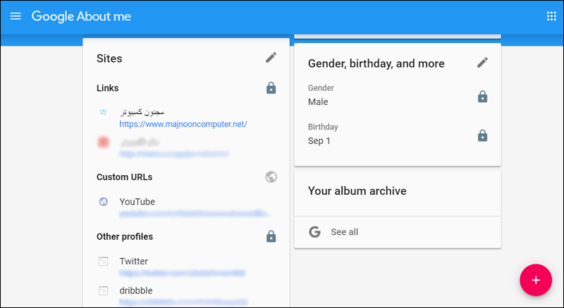 إذا كانت هذه البيانات جزءًا من حساب جوجل الخاص بك، فيمكنك التحكم في من يراها من صفحة Control what people see about you. يمكنك الانتقال إلى هذه الصفحة من خلال النقر على People & sharing ثم اختر Choose what others see فى حسابك على جوجل.