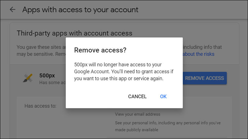 الآن، سترى جميع التطبيقات الخارجية التي لها حق الوصول إلى جزء من معلومات حساب جوجل الخاص بك. انقر على كل تطبيق لمعرفة أي معلومات يمكنها معرفتها أو تعديلها. إذا لم تكن راضيًا عما تراه أو أنك لم تعد تستخدم هذا التطبيق، فانقر فوق الزر “Remove Access” لفصل التطبيق من حسابك.