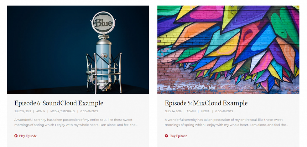 يتم عرض الحلقات كما في الصورة بالأعلى و عند النقر على الحلقة يتم الانتقال إلى صفحة مخصصة بالحلقة المطلوبة تحتوي على مشغل البودكاست و الوصف الذي يمكنك من اضافة النصوص و الصور و الأزرار و الروابط بنفس الطريقة التي يتم بها كتابة مقالة في ووردبريس.