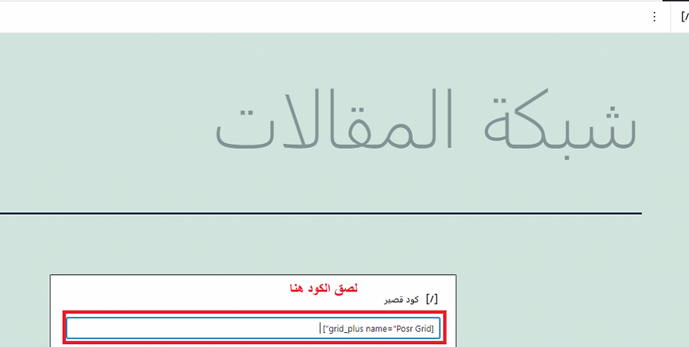11-افتح الآن أي صفحة في موقغك في وضعية التحرير، أو أضف صفحة جديدة بعنوان (شبكة المقالات) على موقع الويب الخاص بك، وأضف لها المكون الكود القصير وقم بلصق الكود الذي نسخته داخله واحفظ التغييرات.
