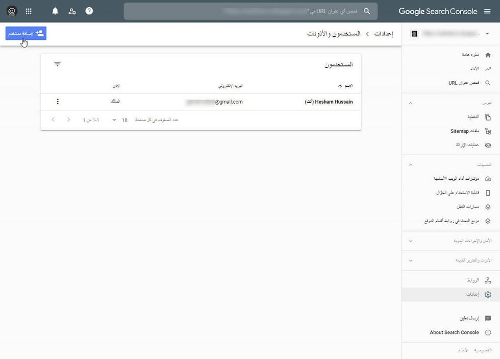 إعدادات: منها تستطيع إضافة المتحكمين في Google Search Console ، مثل إضافة مستخدم أو متحكم جديد تتم بطريقة بسيطة