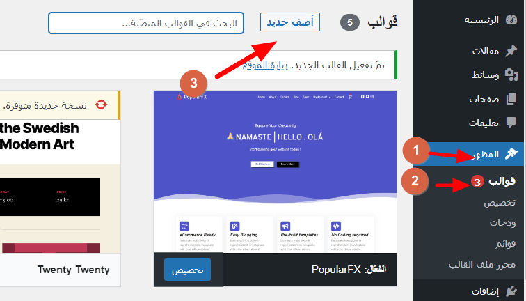 1- تثبيت قالب الووردبريس من داخل لوحة تحكم الووردبريس