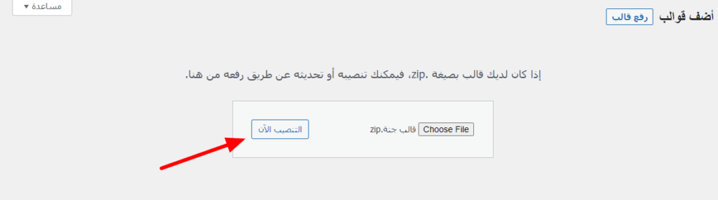 اختر ملف القالب من جهاز الكمبيوتر، ومن بعد ذلك انقر على التنصيب الآن.