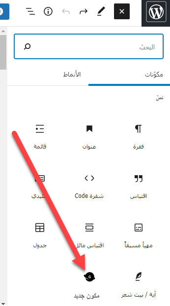 المكونات الإفتراضية داخل محررالمكونات في ووردبريس