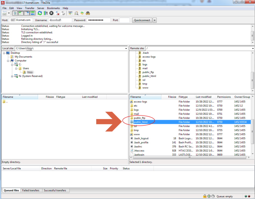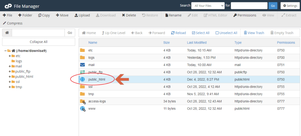 بعدها نقوم بفتح مجلد بإسم Public_html كما بالصورة.