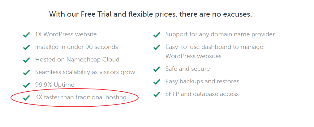 بعد إختيار الووردبريس هوستينج سوف تلاحظ بالأسفل ظهور مميزات هذه الإستضافة ومكتوب أنها أسرع ب 3 مرات من الإستضافة المشتركة العادية.