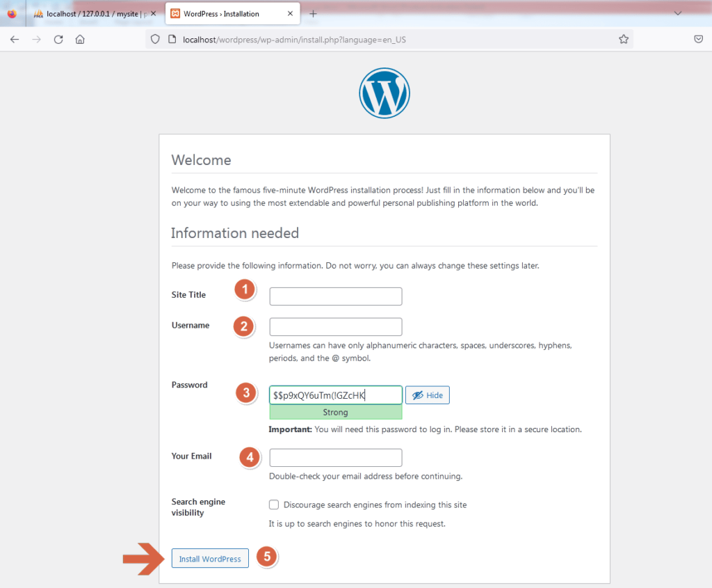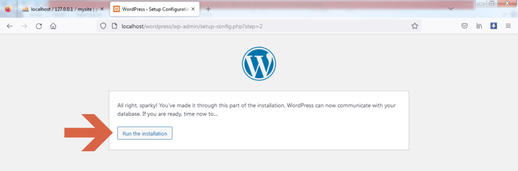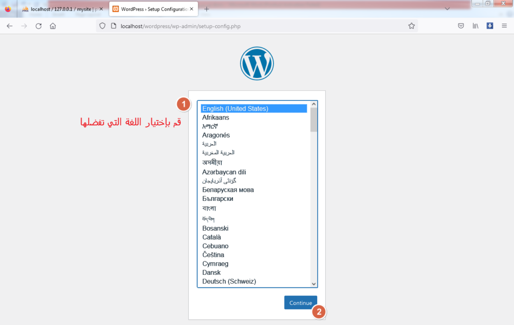 4- بدء تسطيب الووردبريس على السيرفر المحلي