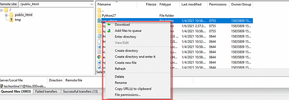 التحكم في ملفات الووردبريس من خلال FileZilla