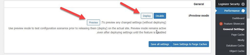 سيظهر لك في بداية الصفحة “Preview Mode” وهو وضع يستخدم إن كنت تريد اختبار بعض الإعدادات، وفي الوقت نفسه لا تريد إتلاف موقعك إذا حدث خطأ ما، لذلك يمكنك تمكين وضع المعاينة وتغيير إعدادات W3 Total Cache دون الخوف من ظهور أي أخطاء في موقعك أثناء استخدام هذه الإعدادات الجديدة.