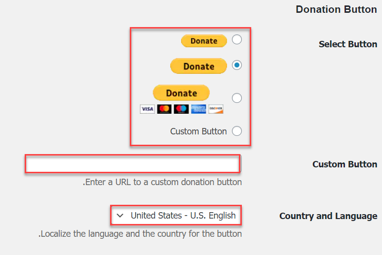 وتقوم بعد ذلك بتغيير بلد التبرع واللغة من أمام خانة Country and Language، وستجد الإعدادات التلقائية الولايات المتحدة الأمريكية واللغة الإنجليزية، وستجد 16 دولة ولغة أخرى تستطيع الإختيار من بينهم بكامل حريتك.