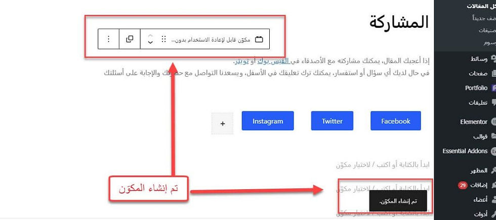 شرح المكوّنات القابلة لإعادة الاستخدام (Reusable Blocks) بالتفصيل