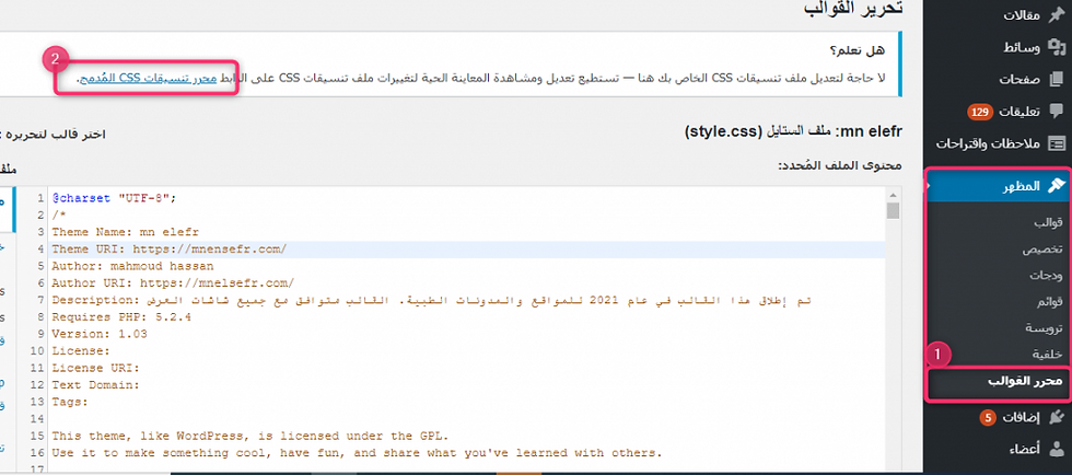 2.انقر على محرر تنسيقات css المدمج كما توضح الصورة التالية: