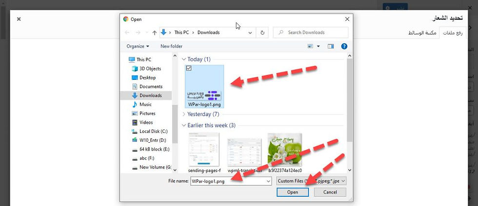 سيظهر لك مربع “تحديد الشعار” وهي لاختيار الشعار الخاص بك ، إختر التبويب “رفع ملفات”