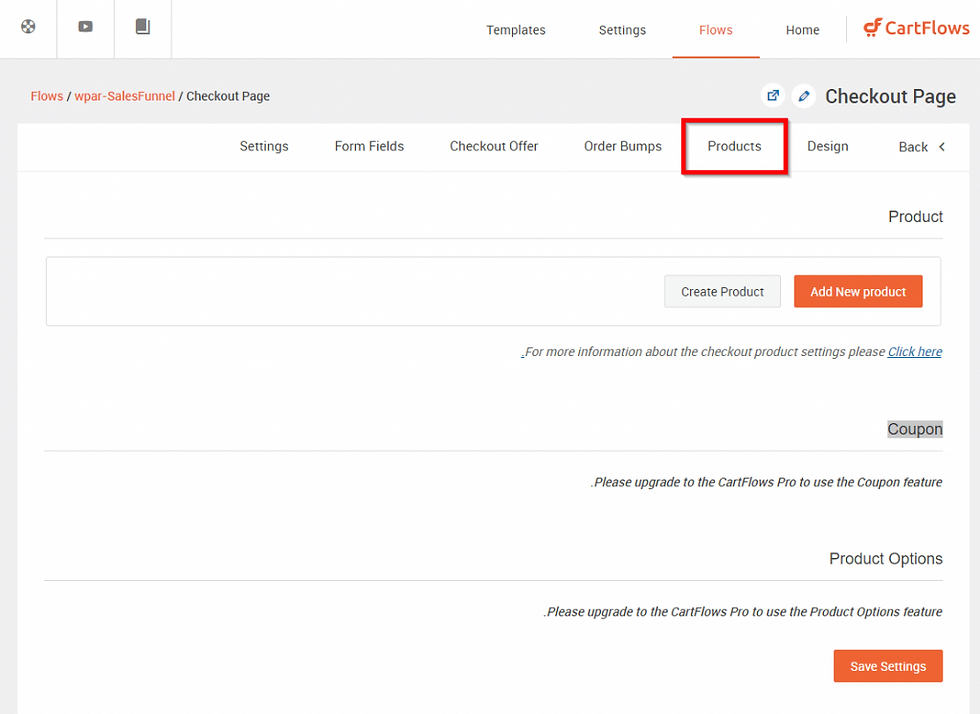 تعتمد إضافة CartFlows على محرر الصفحات Elementor، بشكل افتراضي ولكن يمكن تغيير ذلك من صفحة الإعدادات قبل البدء بإنشاء قمع المبيعات.