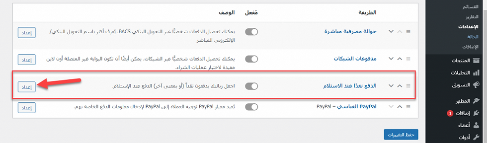 تفعيل أو تعطيل طريقة الدفع عند الاستلام داخل متجرك .