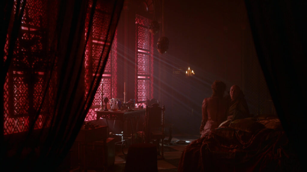 ثالثاً سنحتاج إلى خلق تباين في مسار الضوء، وذلك عن طريق إستخدام أجسام ونقوش، تقطع الضوء بتفصيل معين ليسمح بخلق التباين بين الظلال والضوء، ذلك يشمل الشِباك، الزخارف الخشبية، الزجاج الملون والمتقطع، بمختلف أشكاله، مايهم هنا هو خلق التباين في الضوء، لتشكيل تباين متناغم بين الضوء والظل.