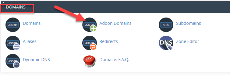 ثم بعد ربط الدومين بالاستضافة بشكل جيد، يمكنك الآن التوجه إلى لوحة تحكم الاستضافة Cpanel الخاصة بموقعك، ثم الدخول على اداة Addon domains: