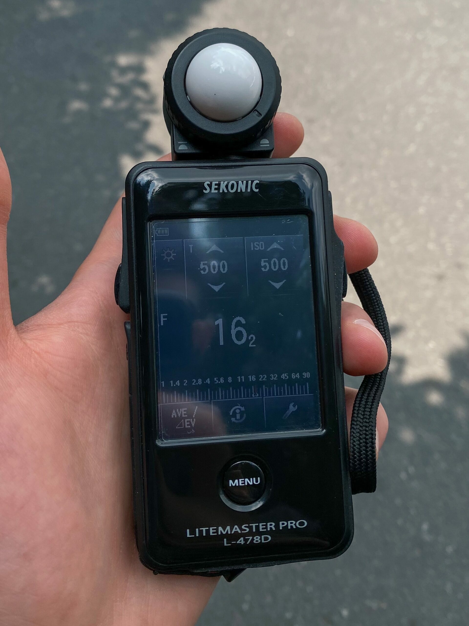 لنفترض أننا نصور مشهداً ما بواسطة كاميرا Arri Mini LF، سنقوم بالتصوير بعدد إطارات 24 اطار في الثانية، وبقيمة آيزو 800، نقوم بتحديد سرعة الغالق على 180 درجة والتي تساوي 1/48 أو للتقريب 1/50، ولنفترض أننا نقوم بالتصوير بفتحة عدسة تساوي T/4.