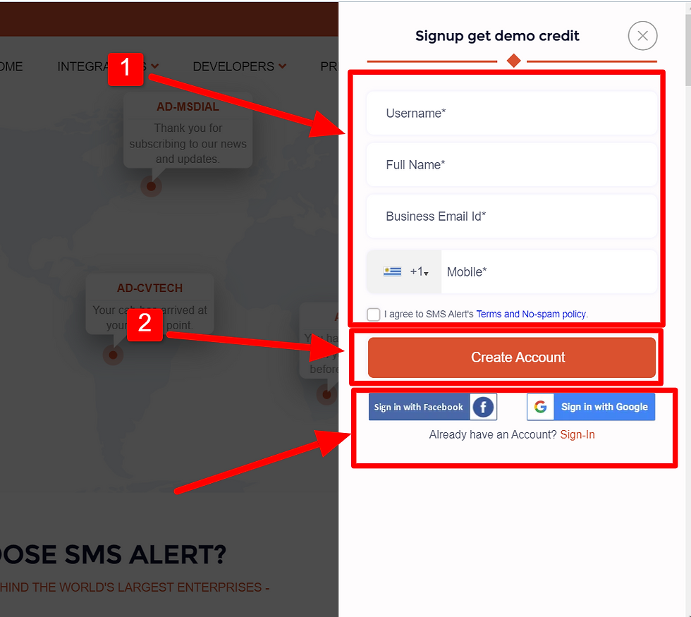 اذهب للموقع الرسمي لخدمة SMS alert وأنشئ حساب جديد من خلال sign up، أو يمكنك تسجيل الدخول من خلال login إذا كان لديك حساب من قبل.