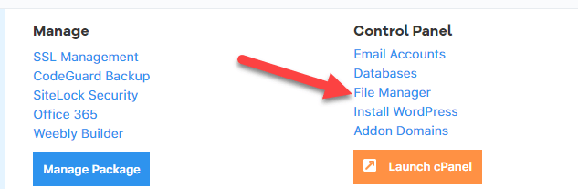 الخطوة الأولى لإنشاء القالب الابن Child theme هي إنشاء مجلد باسم القالب داخل مدير ملفات موقعك، حيث يمكنك الدخول إلى مدير ملفات الموقع من خلال النقر على File Manager من لوحة تحكم الاستضافة cPanel: