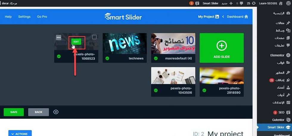 في هذه الخطوة، يمكنك البدء بالعمل الإحترافي، حيث يمكنك التعديل على السلايدر من خلال الضغط على Edit