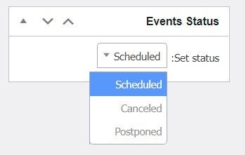 كما يمكنك من خلال حقل (Events Status) اختيار وضع الحدث إما مجدول (Scheduled) أو مُلغى (Canceled) أو مؤجل (Postponed).