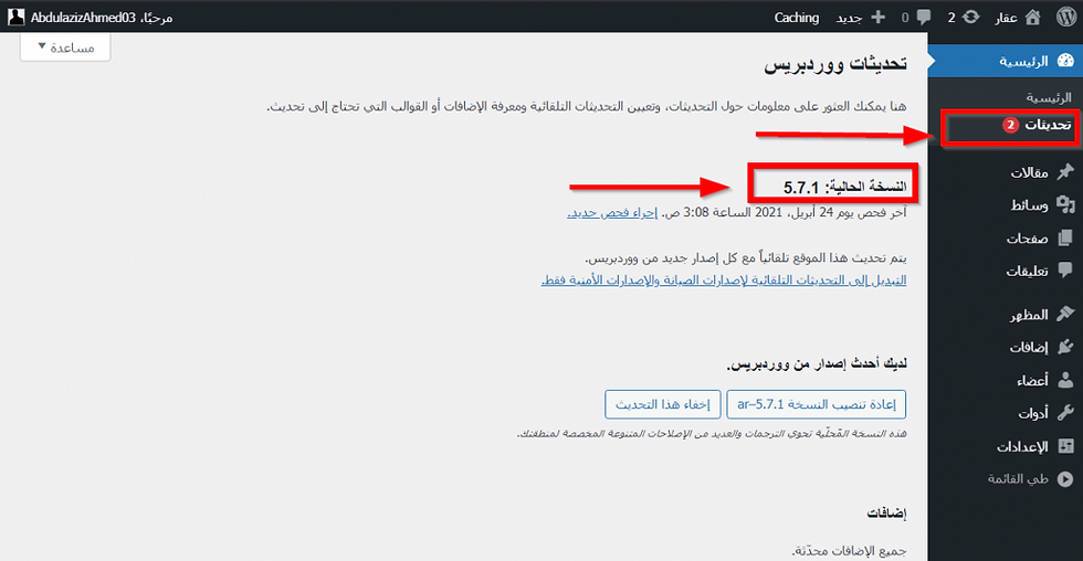 1)التحديث عن طريق لوحة تحكم موقع الووردبرس