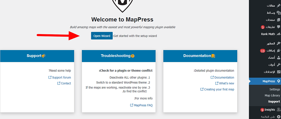 ثم بعد ذلك توجه إلى إعدادات الإضافة، وذلك بالنقر على open wizard