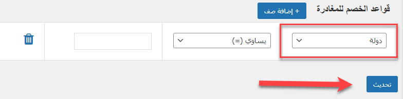 ويمكنك اضافة المزيد من الصفوف لمضاعفة شروط الخصم، مثل أن يكون الزائر من دولة معينة، وفي نفس الوقت تكون قيمة الطلب بمبلغ معين تحدده أنت: