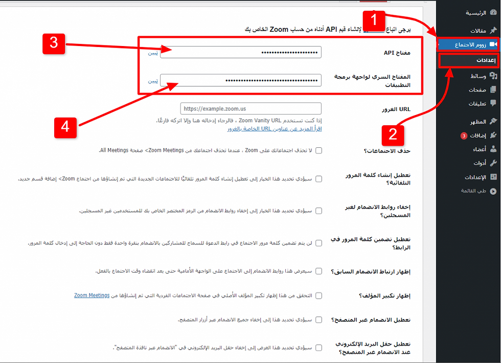 دمج اجتماعات زووم بموقع ووردبريس