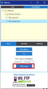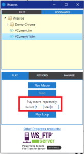 8. يمكننا تشغيل الماكرو لعدد متكرر من المرات، وذلك بتغيير الرقم في خانة Max ومن ثم النقر على تشغيل في حلقة Play Loop.