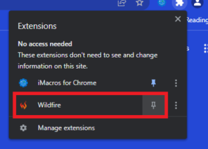 قد لا تناسبك إضافة iMacros نظرًا لواجهتها البدائية واعتمادها الكبير على الشيفرة البرمجية لتحقيق النتيجة المرجوة، وقد تكون إضافة Wildfire خيارًا أفضل لك في هذه الحالة إذ تتميز واجهته ببساطتها ووضوحها بالإضافة إلى احتوائه على العديد من المزايا الأخرى مقارنةً بالإضافة السابقة.