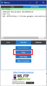 4. انقر على إيقاف التسجيل Stop بعد الانتهاء من تسجيل سلسلة الأفعال.
