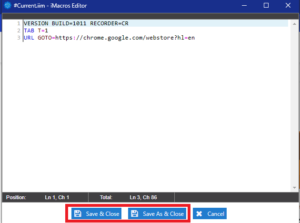 5. ستظهر لك شاشة منبثقة تحتوي على الشيفرة البرمجية الخاصة بالماكرو، ويمكنك تعديلها يدويًا وإضافة بعض الأوامر الأخرى. تجد هنا جميع الأوامر الخاصة ببرنامج iMacros.
