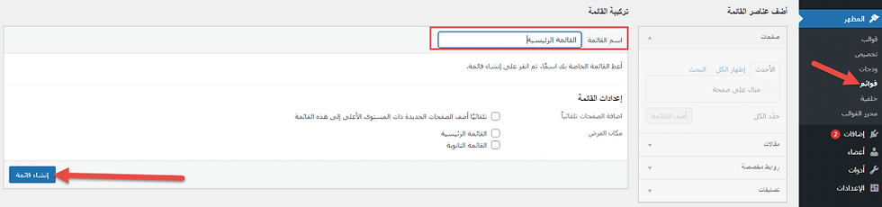 إنشاء قائمة التنقل الرئيسية في الووردبريس.